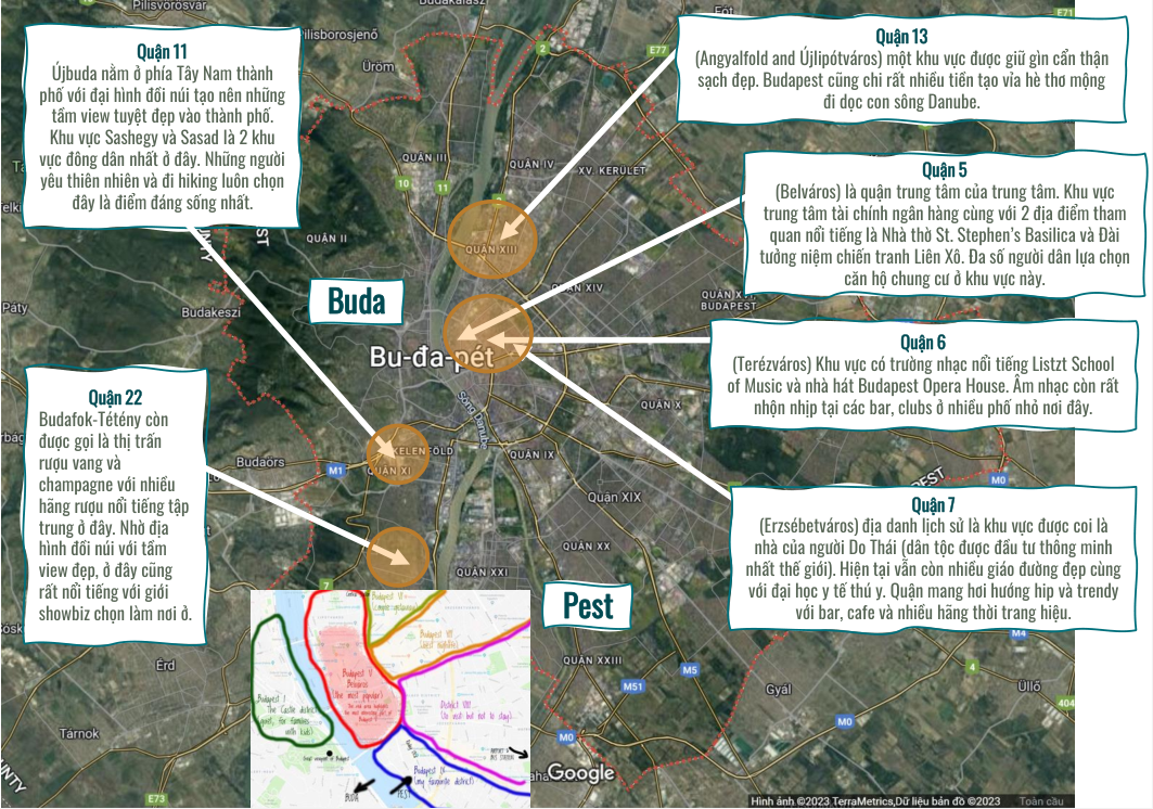SƠ ĐỒ VÀ GIÁ NHÀ CÁC QUẬN CỦA BUDAPEST